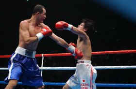 6日、さいたま市のさいたまスーパーアリーナでトリプル世界戦が行われ、日本人3選手全員が判定負けした。 トップをきってウィラポンの持つWBCバンタム級王座に挑んだ西岡利晃(帝拳)は、初回こそ打って出たもののやはりウィラポンの壁は厚かった。王者の右リードを食らいつづけ、ポイントを失う。3回にバッティングで負った右目上のカットも、回をおうごとに出血がひどくなり、結局、0−3(116−110,117−109,118−109)の判定負け。西岡本人も「すっきりしました。完敗です。ウィラポンは今回が一番強かった」と完敗を認めている。今後については、「(5度目の世界戦が)決まれば、やる。でも、自分自身も、見ている人も、やりのこしたことはないんじゃないですか」と言葉を濁した。