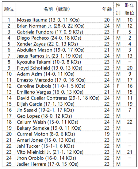 ◆WBA 2026年01月ランキング ~ ザンダー・ザヤスが2団体統一。
